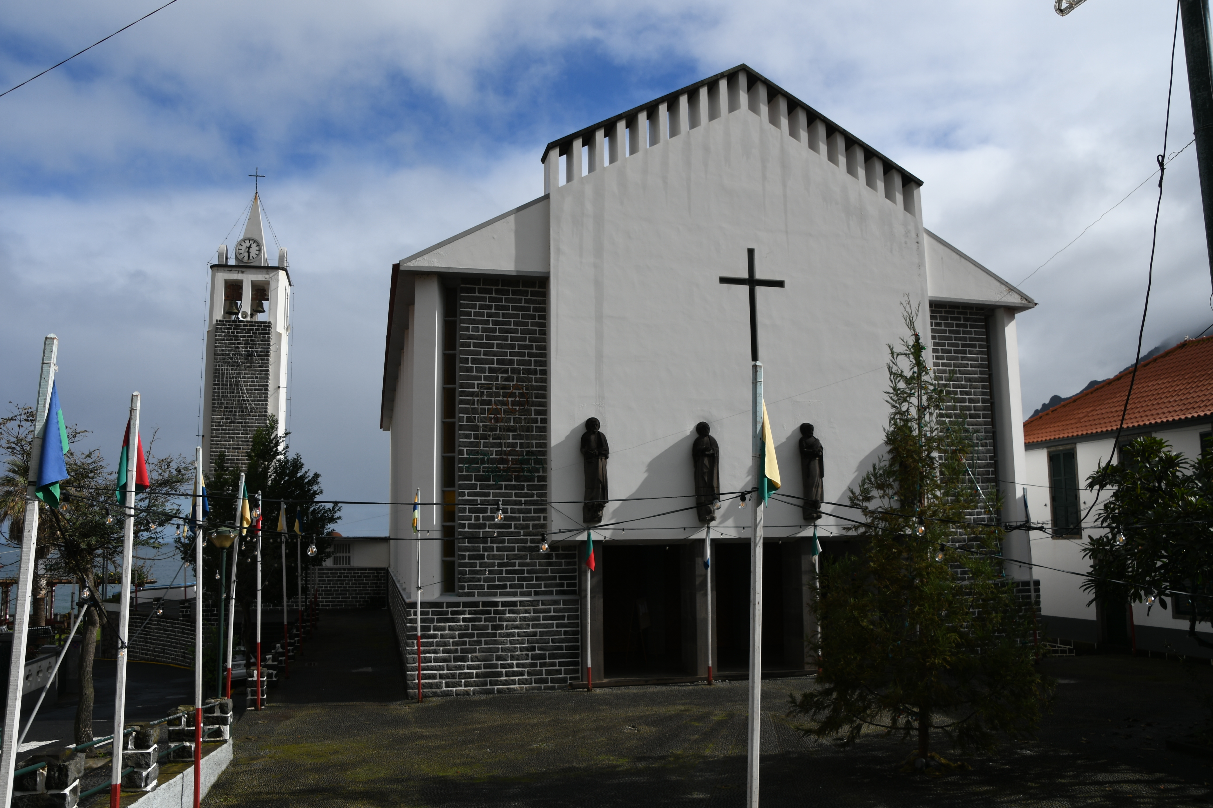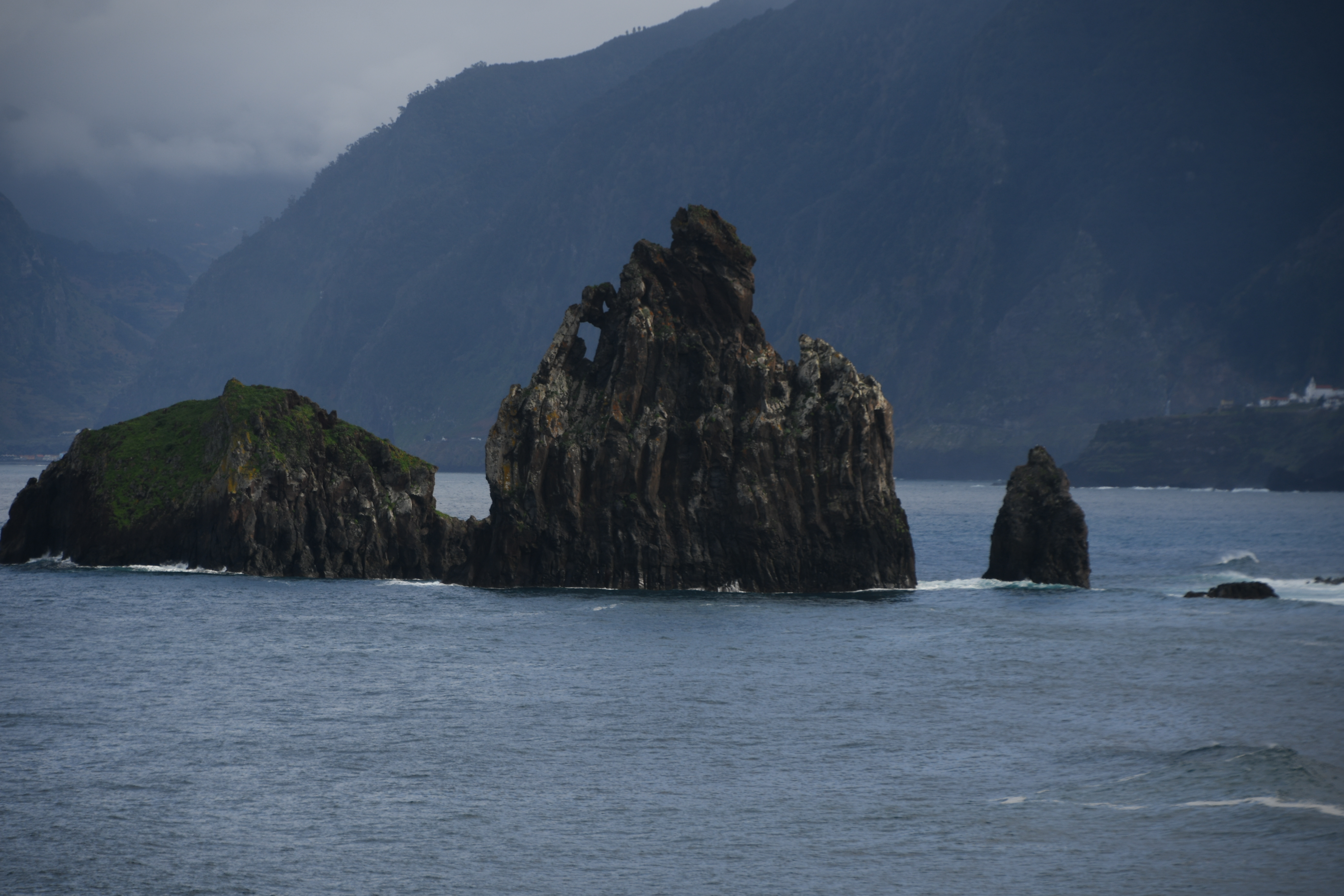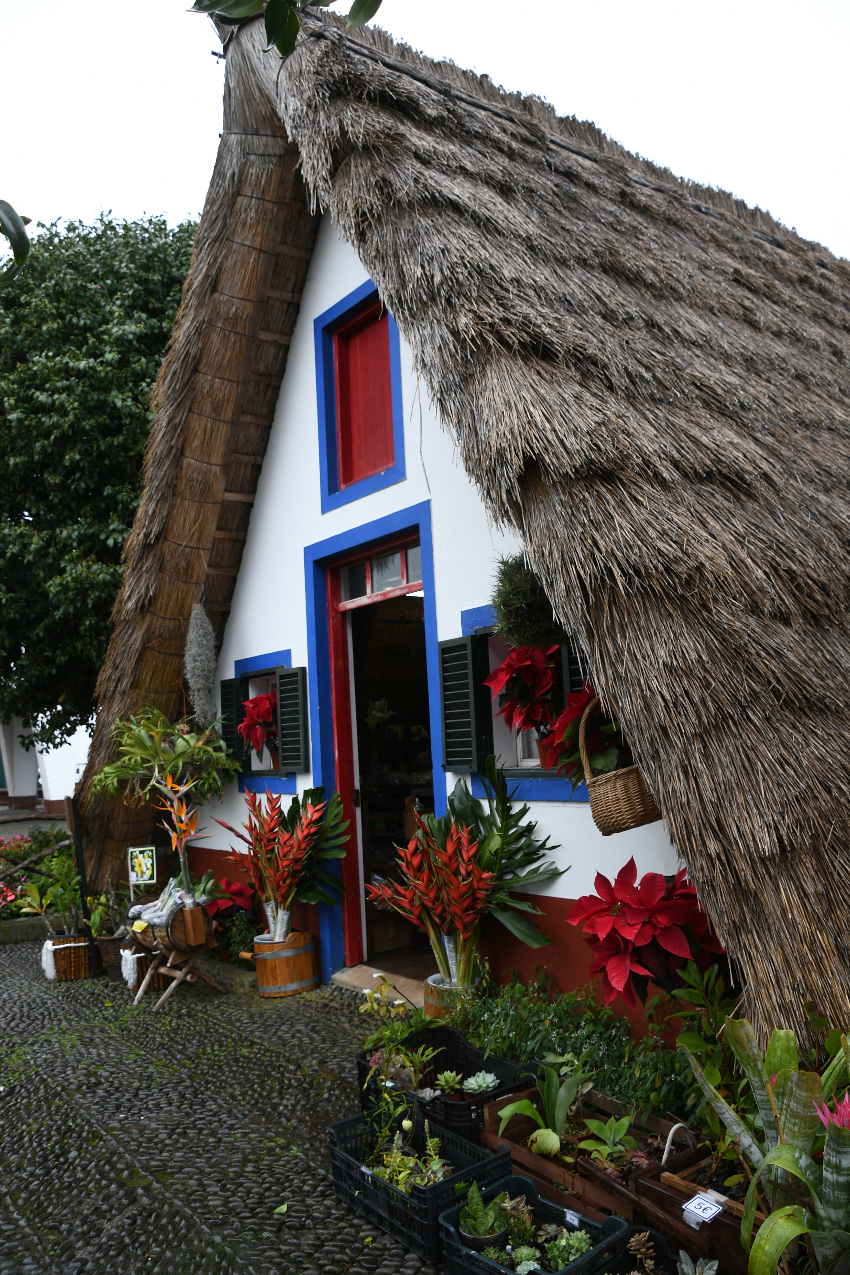 Mit Umweg über Porto da Cruz komme ich mit etwas Verspätung über Nebenstraßen im Niesel nach Santana, wo ich etwas brauche, die berühmten Häuschen zu finden: so wenige und so unscheinbar sind sie im Stadtbild integriert.