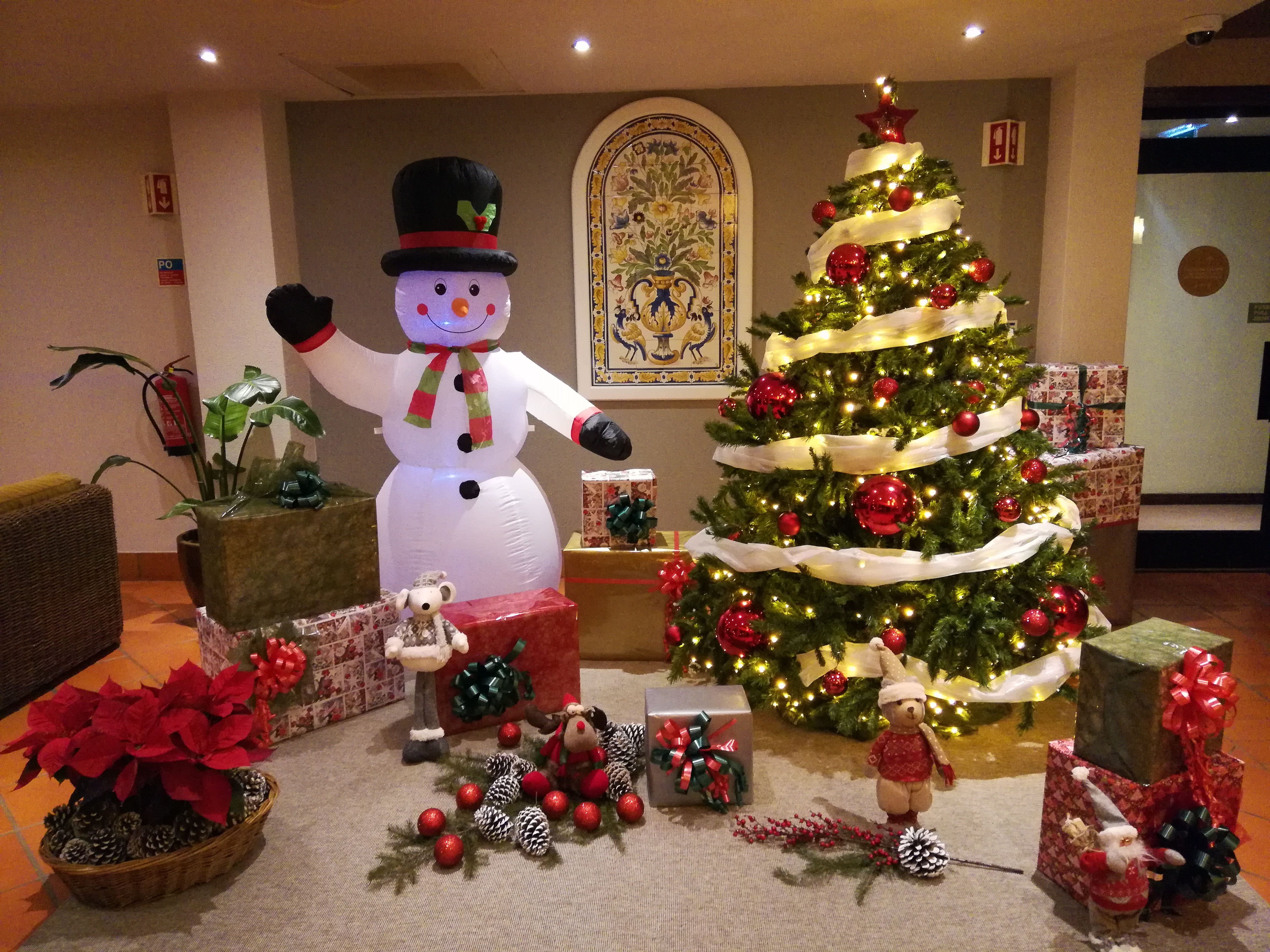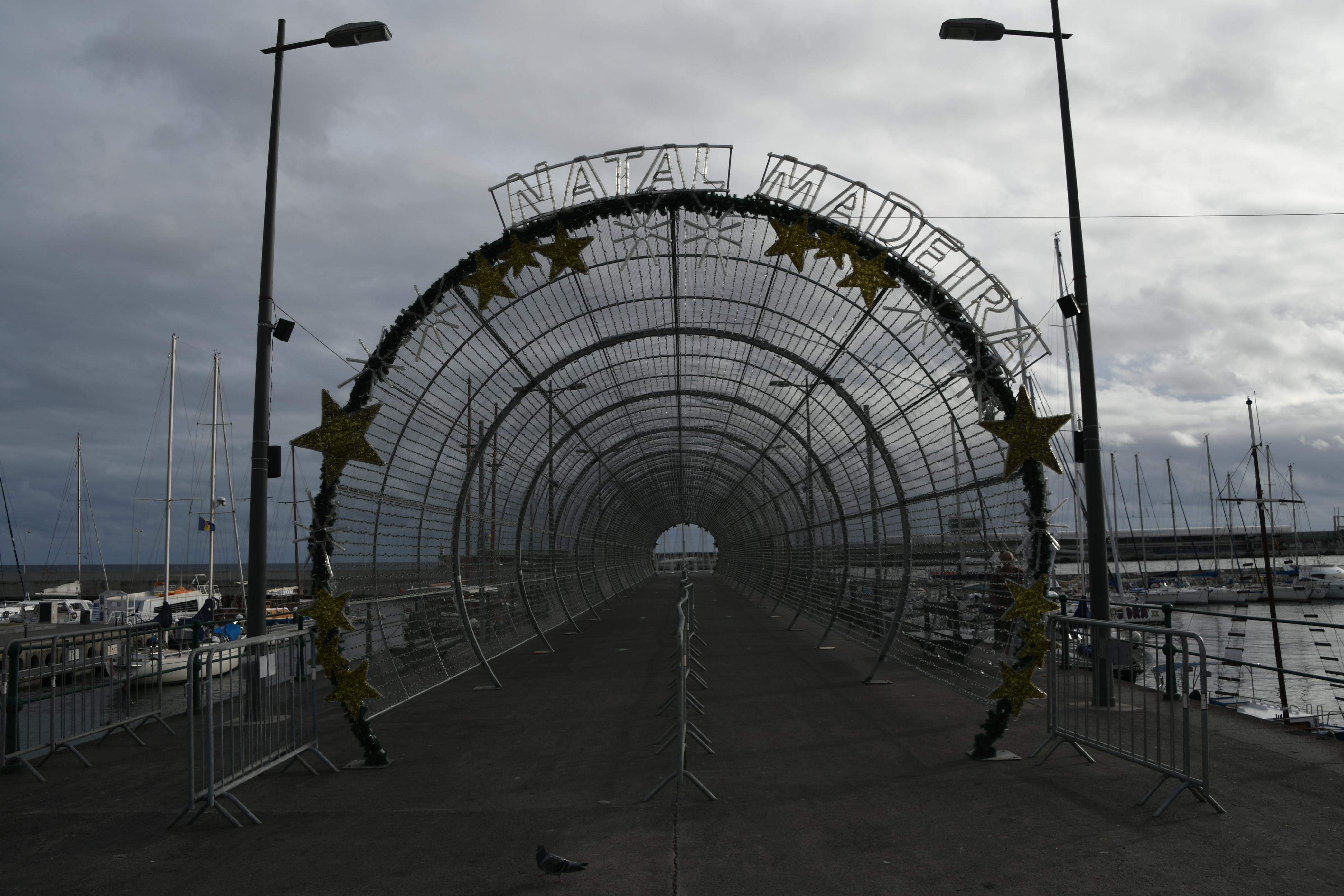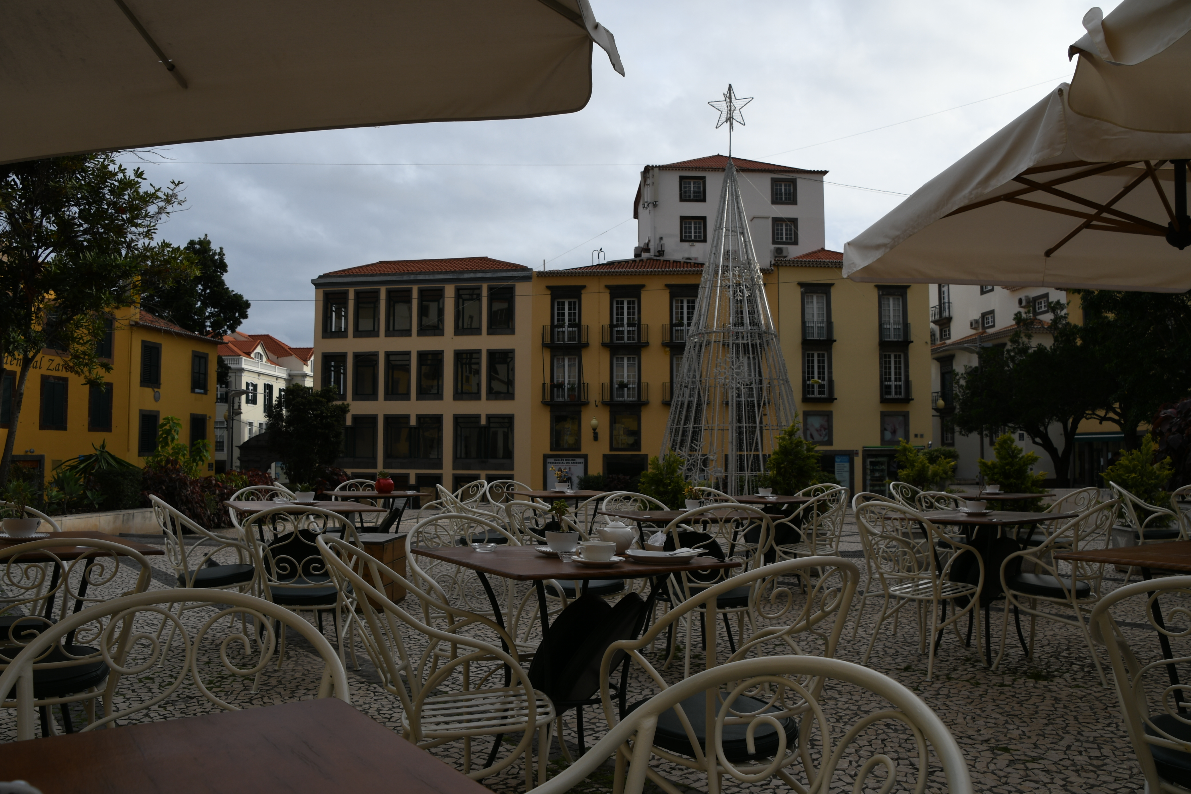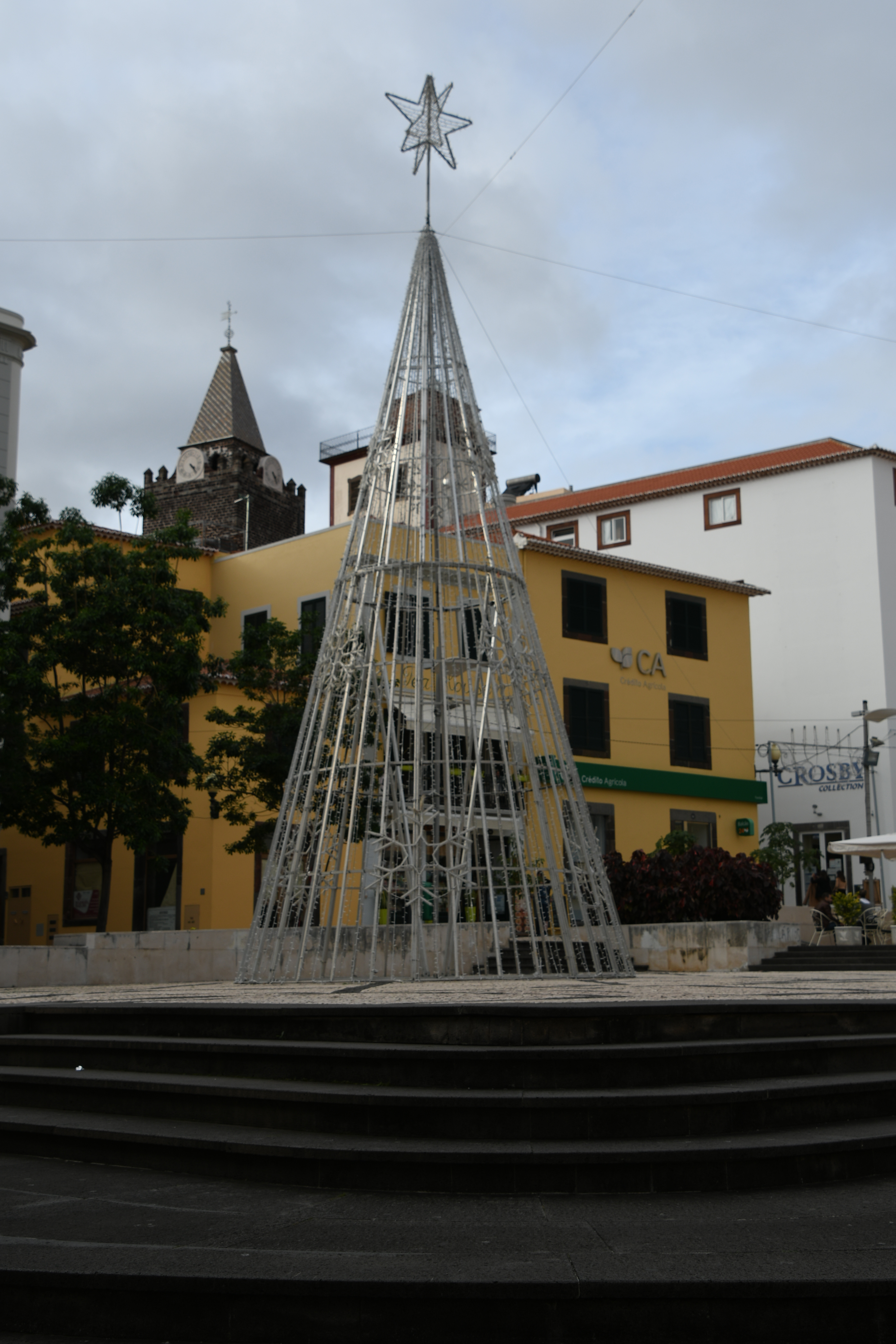 Ich lasse mich vom Navi an den Hafen führen und parke direkt bei CR7: ein großes Parkhaus unter dem Hotel und ein toller Ausgangspunkt: ich kann das Feld von hinten aufrollen. Überall ist noch weihnachtlich dekoriert und ich weiß gar nicht, in welche Richtung ich zuerst Fotos machen soll. Alles ist noch so vertraut, als wäre ich gestern erst da gewesen. Also bummle ich die Promenade am Hafen entlang bis zum Eingang in die Innenstadt. Kurz dahinter liegt der Platz, der nach Christoph Columbus benannt ist – und an dem ein sehr nettes Teehaus seine Pforten noch geöffnet hat. Nachdem ich heute schon Kaffee hatte, freue ich mich jetzt auf einen feinen Tee und ein Stück Kuchen, bevor es in Richtung Kirche weitergeht. Dort findet gerade eine Messe statt und ich spicke kurz rein, da die Kirche letztes Mal zu hatte.