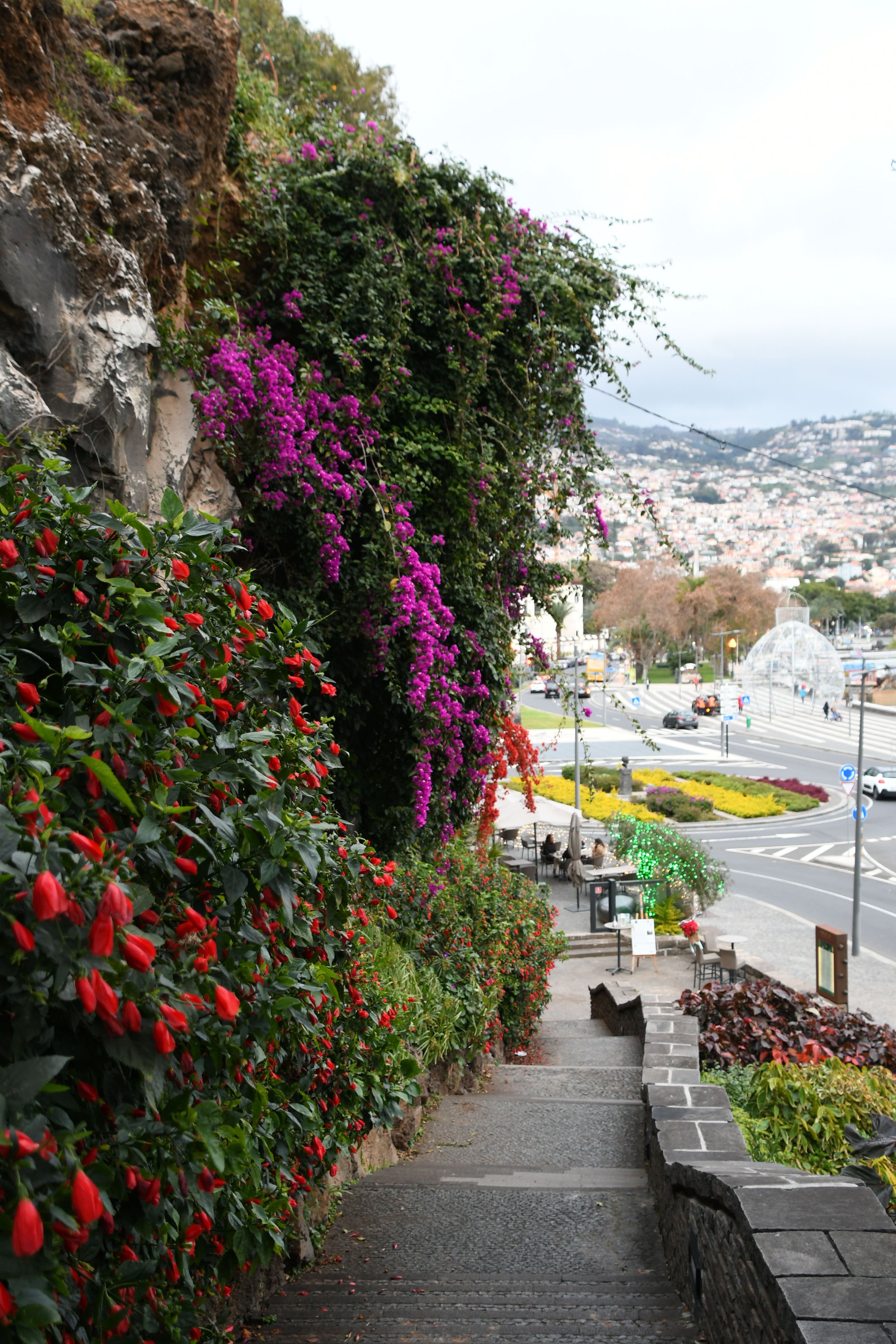 Nachdem schon bald der Regen aufhört und es immer heller wird, je mehr wir uns Funchal nähern, beschließe ich kurzfristig, den Tag noch nicht aufhören zu lassen. Also Schuhe schnell auf die Terrasse zum Abtrocknen, etwas schickere Klamotten an und los geht’s in die Hauptstadt.