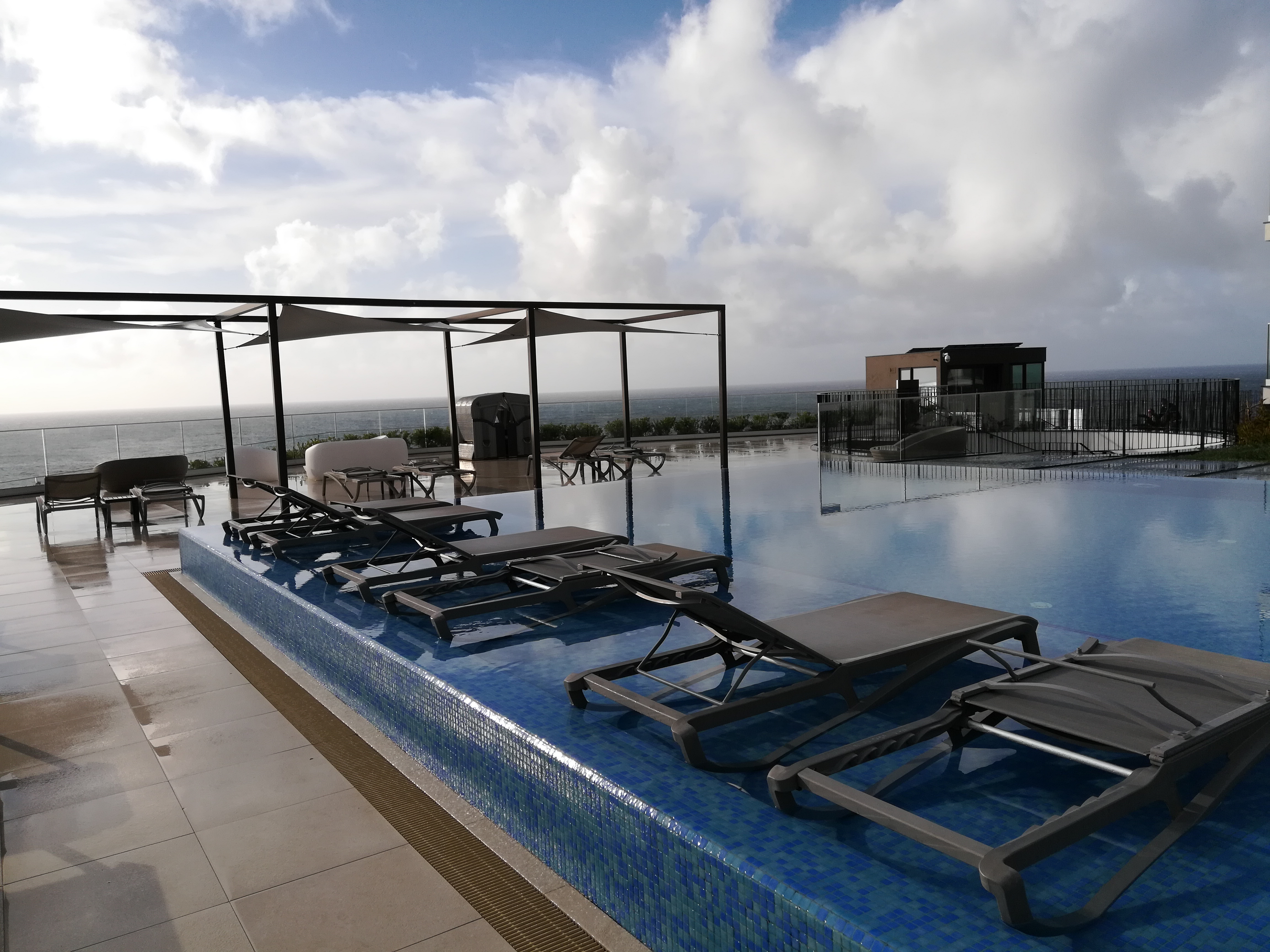 Wenig später sitze ich jetzt auf meinem Liegestuhl am Pool und habe beschlossen, den Nachmittag einfach nur Sonne tankender Weise zu verbringen. Auch hier macht mir das Wetter immer mal wieder einen Strich durch die Rechnung. Nächstes Ziel: Mein Balkon. Nachdem die Sonne inzwischen ums Haus rum ist, kann ich mich auch hier hinsetzen und mir sogar einen lecker Tee aus den Zitronengras-Blättern machen, die ich noch von Silvester liegen habe. Jedesmal wenn es anfängt zu regnen, packe ich einfach meinen Koffer weiter: So bin ich um 5 schon mit allem fertig und kann rüber ins Galosol, die Handtücher abgeben und meine Rechnung bezahlen.