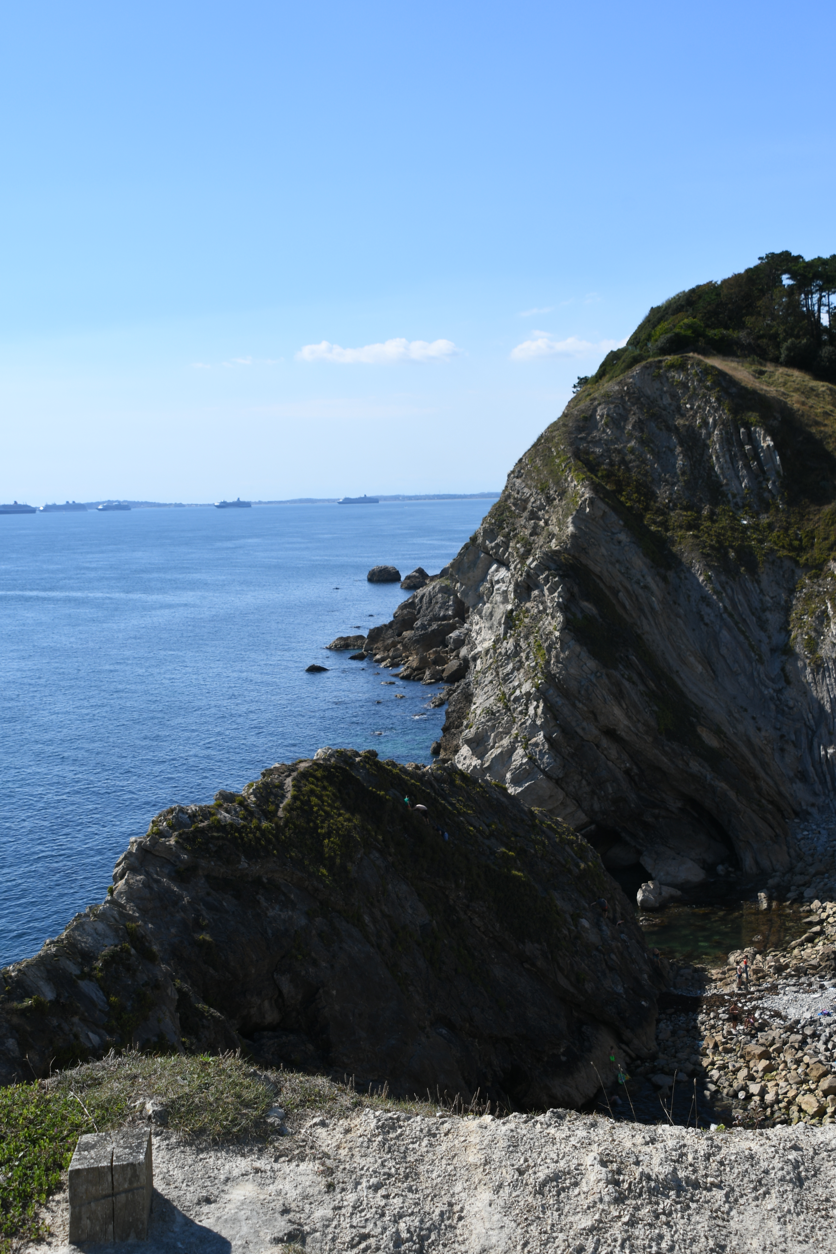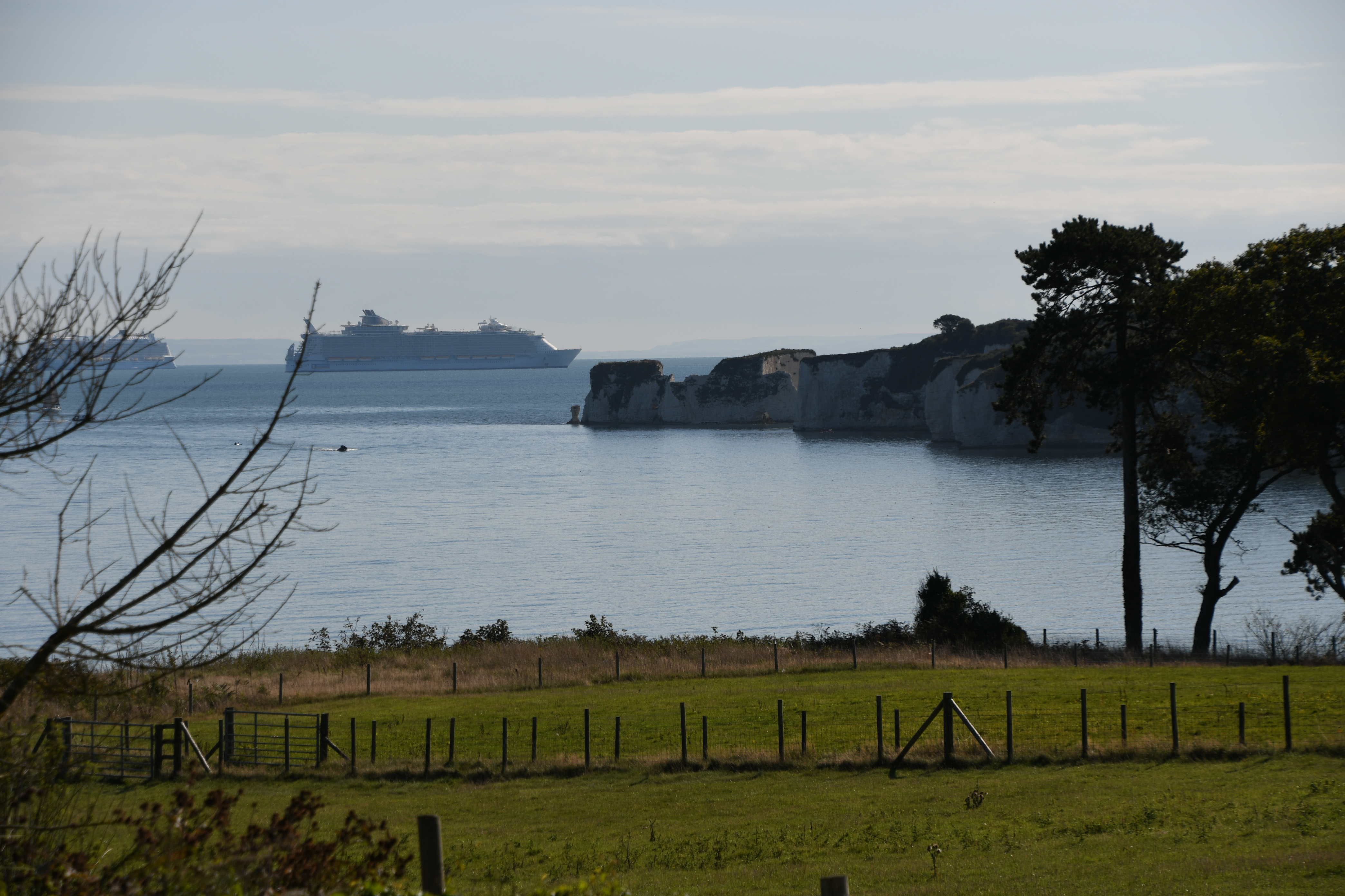 Was für ein Anblick ! Ich könnte jauchzen !! Und im Hintergrund wieder meine Begleiter: diesmal sind es schon 6 Kreuzfahrtschiffe, die in Weymouth stehen und die man von hier aus sehen kann…