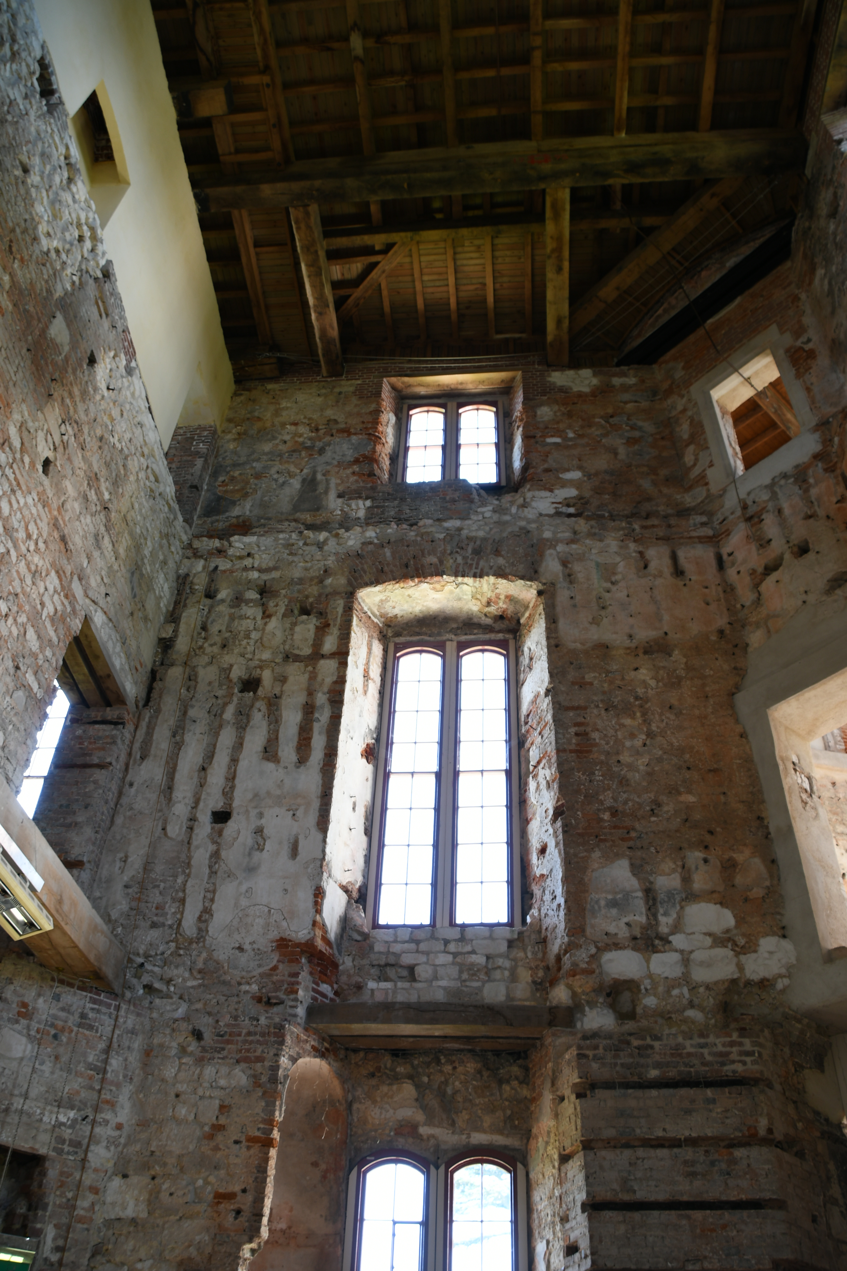 Was mich hier erwartet, ist etwas komplett anderes, als in meiner Vorstellung: Das Schloss ist ursprünglich aus dem 12. Jh. und nach Jahrhunderten in Familienbesitz waren die Räume immer wieder renoviert und prachtvoll ausgestattetet worden. Im August 1929 kam es zu einem verheerenden Brand, der zur Folge hatte, dass das Schloss bis auf die Grundmauern niederbrannte. Dabei wurde zwar viel zerstört, zutage kam aber die ursprüngliche Architektur.