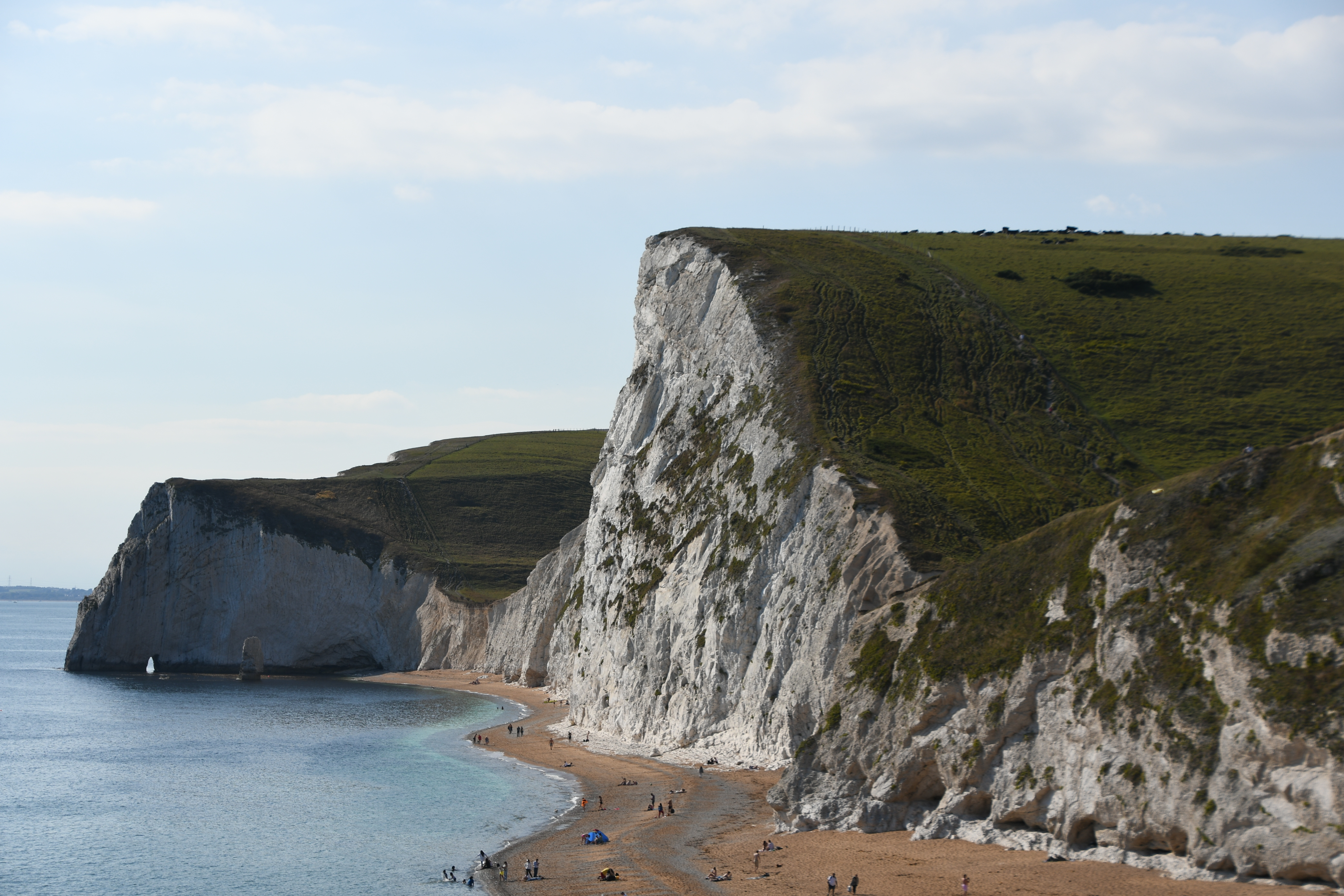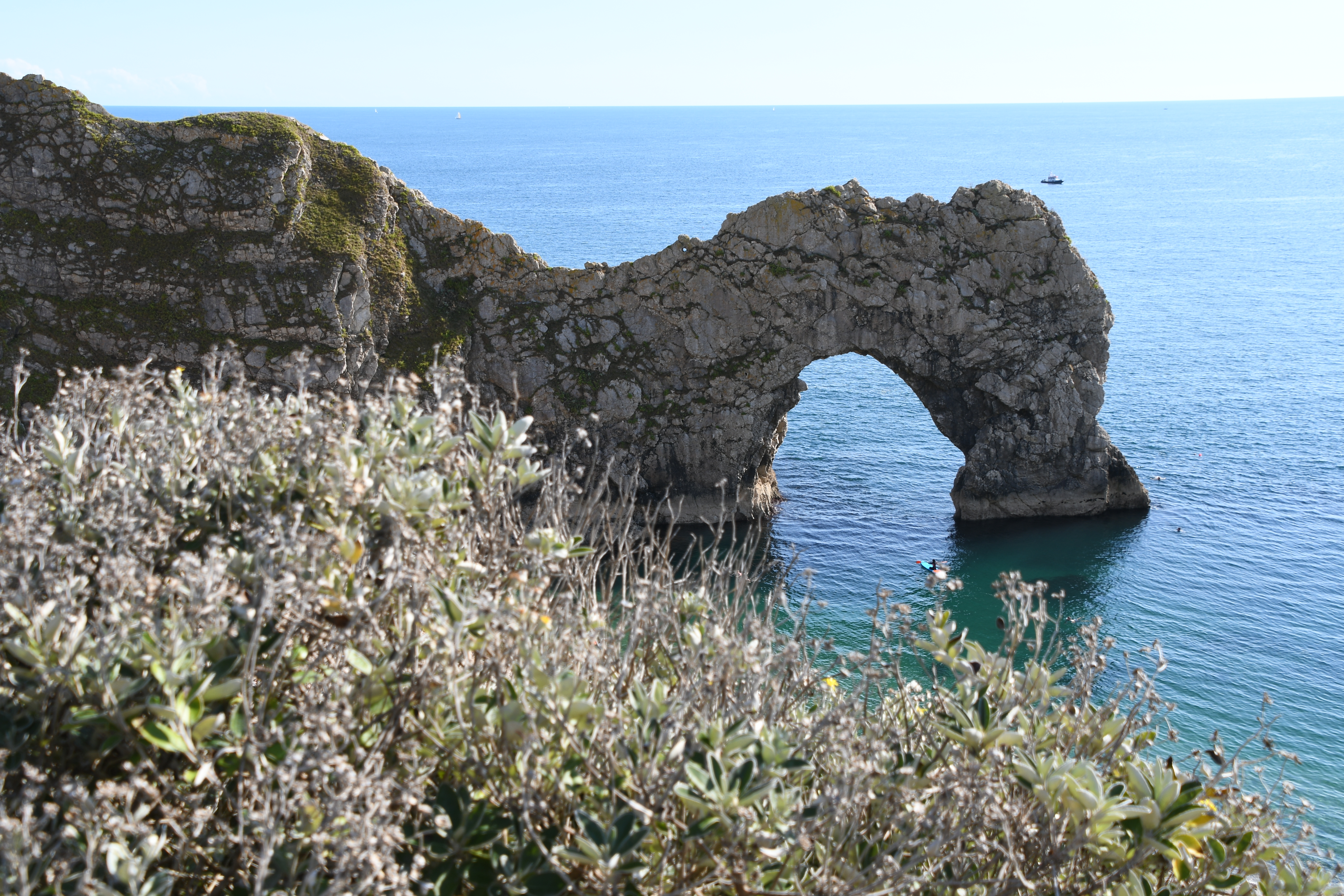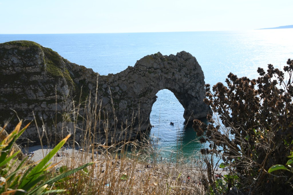 Ich fahre runter nach Lulworth Cove, parke das Auto, ziehe bei dem schönen Wetter tatsächlich meine Shorts an und mache mich auf den Weg. Erst die Bucht – diesmal von oben – und dann über den Hügel rüber zum: Durdle Door. Bei schönstem Wetter ! Ich freue mich riesig, denn genauso habe ich es mir gewünscht, nachdem das Wetter letztes Mal so greulich war.