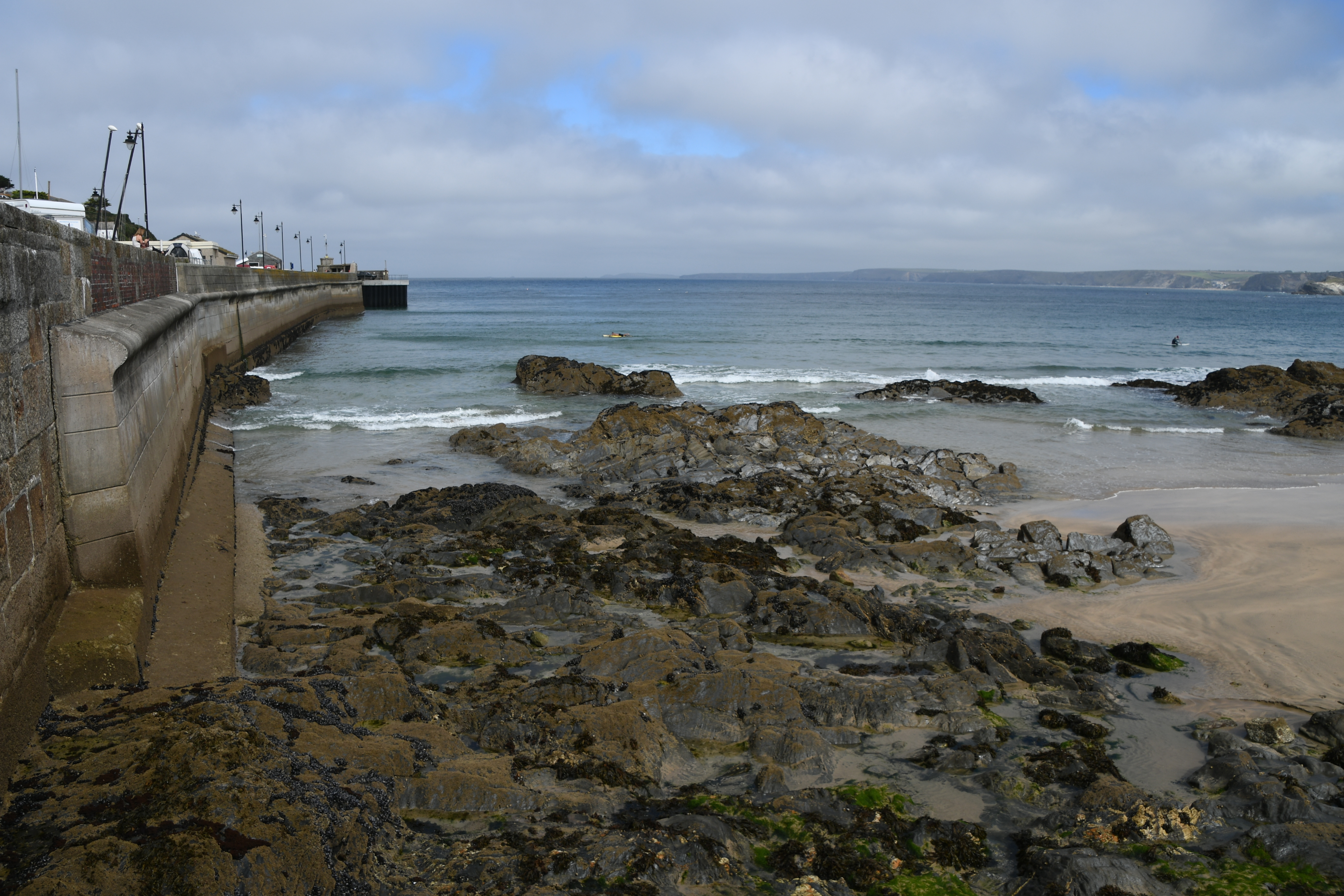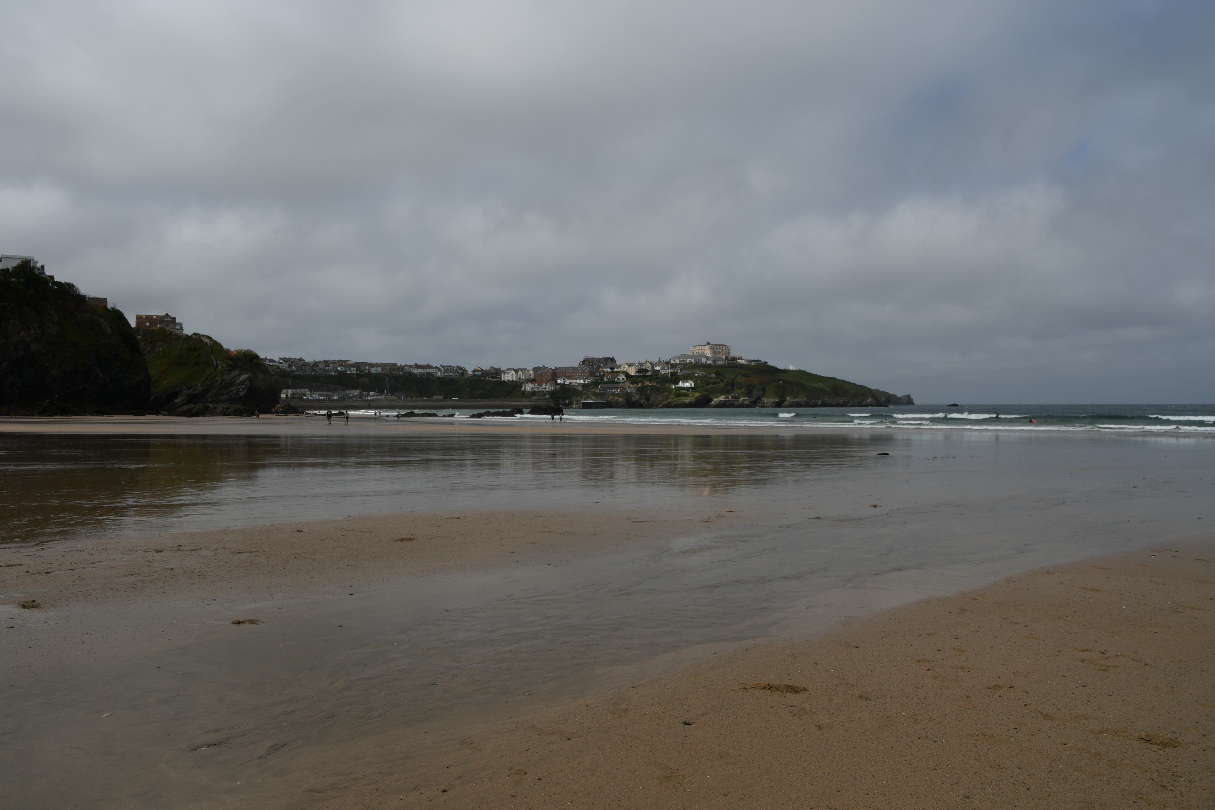 Aber es kommt mal wieder alles anders: Newquay als Surfer-Paradies gefällt mir sehr gut und beim Bummel durch die Stadt blitzt immer wieder der Blick auf den Strand durch. Spätestens als ich unten am Hafen ankomme – wo die Boote schon wieder teilweise auf dem Trockenen liegen – und mein weiterer Weg mich an den Strand führt, beschließe ich, unten lang zu gehen: und zwar barfuß. Was für eine Wohltat. Das Wasser ist zwar eiskalt, aber beim Laufen wird mir trotzdem warm.