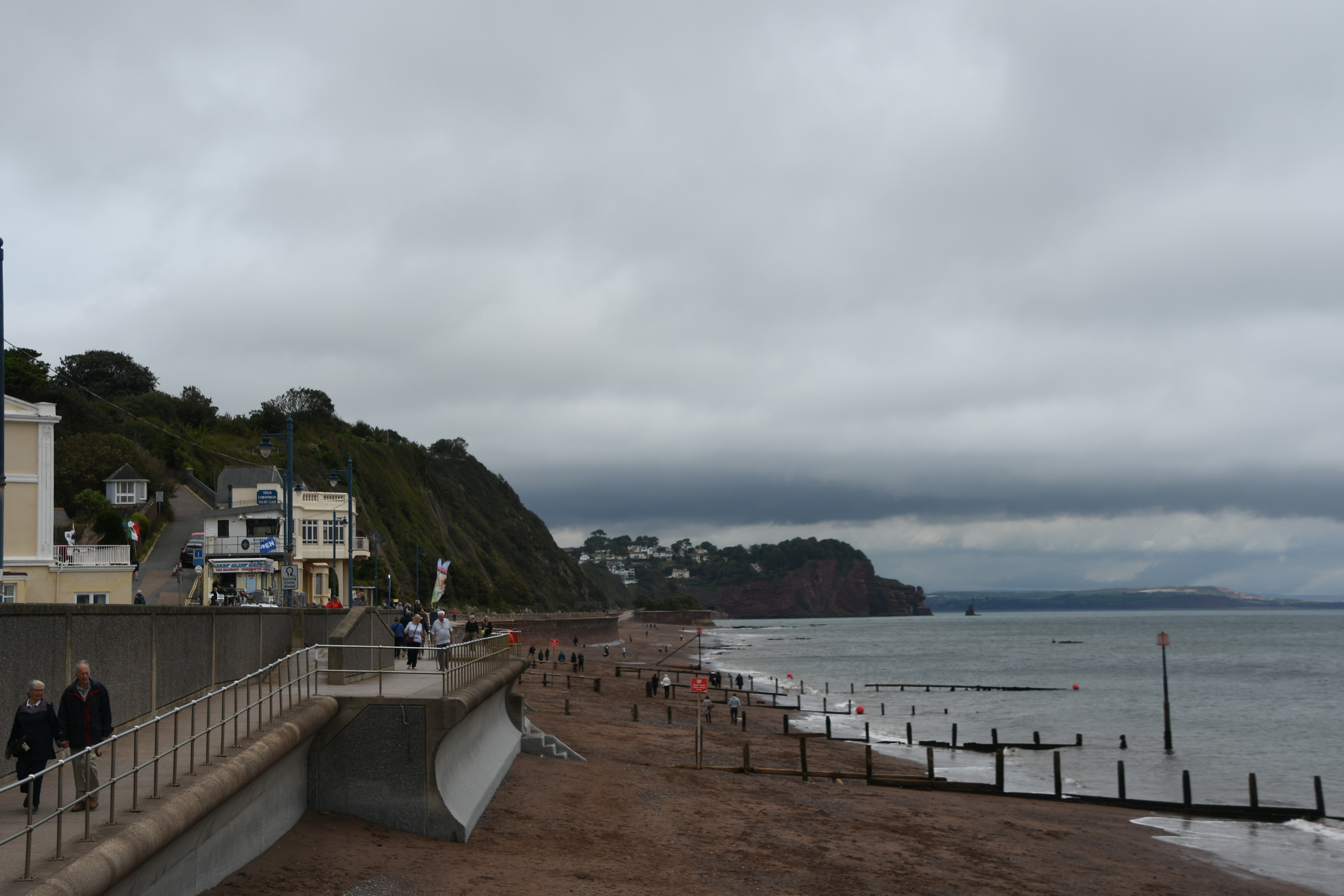 Dann geht es schon nach Exmouth, sehr ähnlich gelegen. Diese Orte zeichnen sich alle durch die Reihe viktorianischer Häuser an der Promenade entlang aus, die sehr teuer sind, weil sie einen Blick auf das Meer haben – was bei diesem Wetter aber eben auch nicht prickelt.