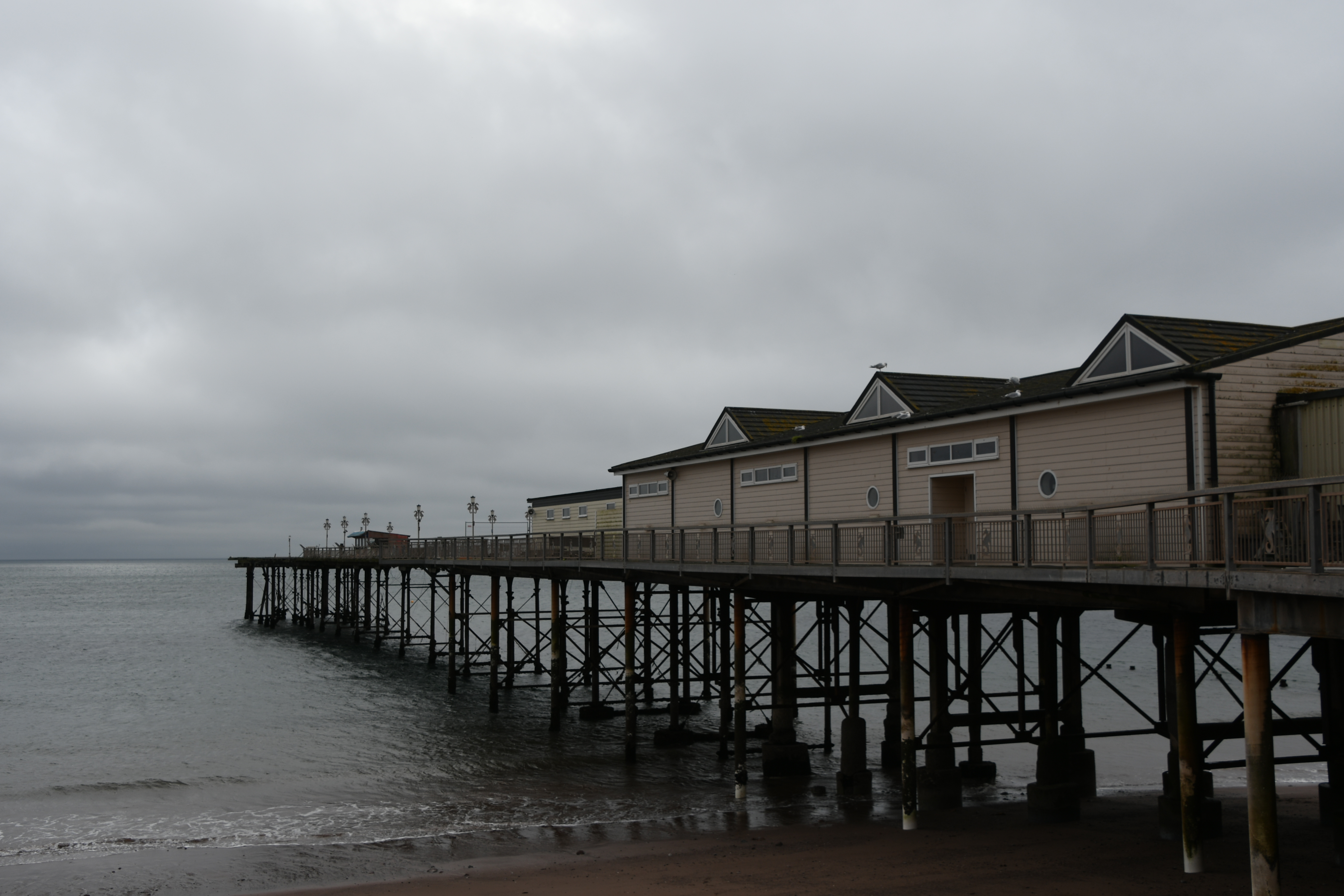 Bei Niesel und wolkenverhangenem Himmel fahre ich an der Küste lang nach Teignmouth, einem kleinen Örtchen mit großem Strand und Pier (ähnlich wie Bournemouth, nur alles viel kleiner). Auch hier hat die Europa-Schule, in der wir damals 2017 waren, eine Filiale – ich kann mich erinnern, dass wir auf dem Rückweg ein paar Jugendliche abgeholt haben. Ein bisschen Bummeln entlang Promenade und Ort verschafft mir einen kleinen Eindruck.