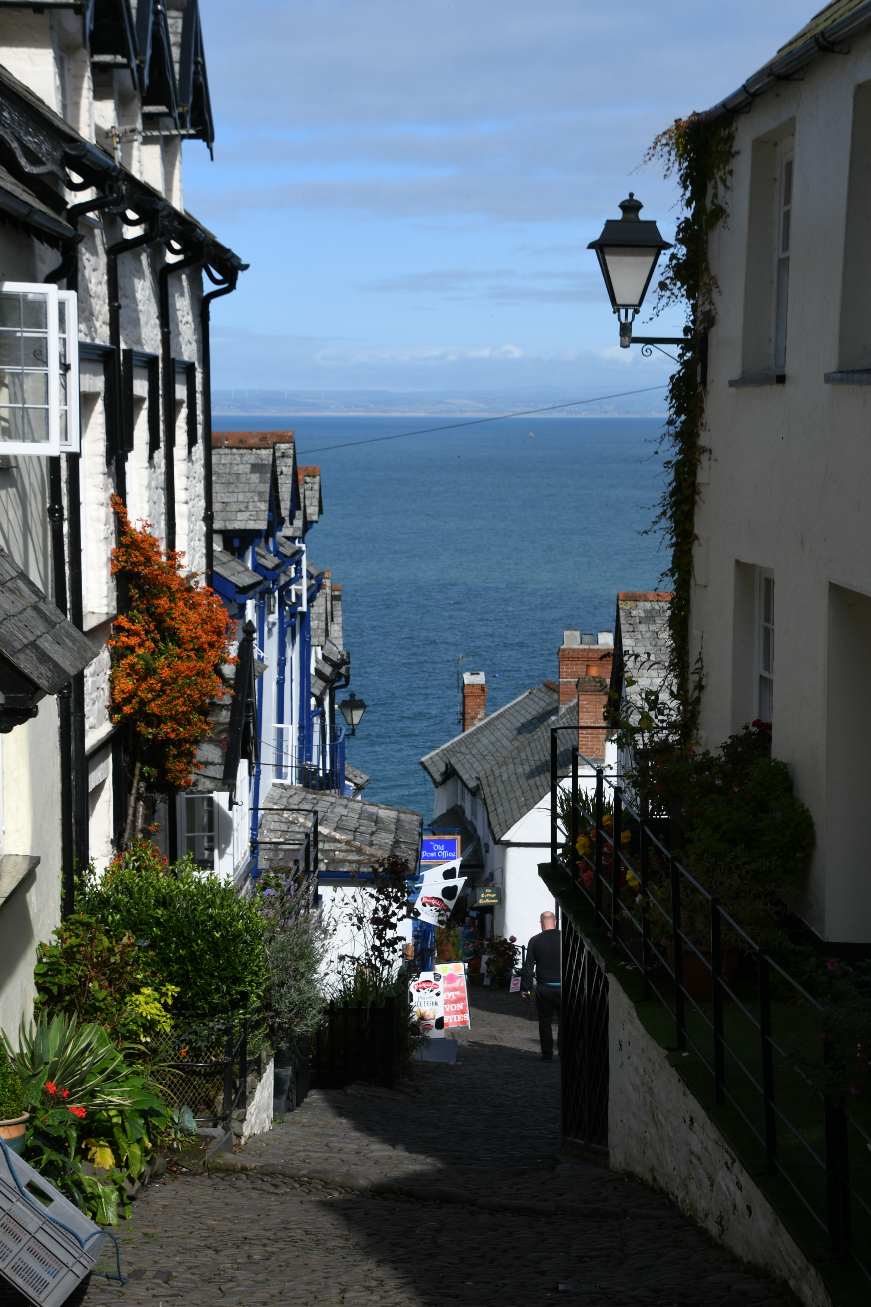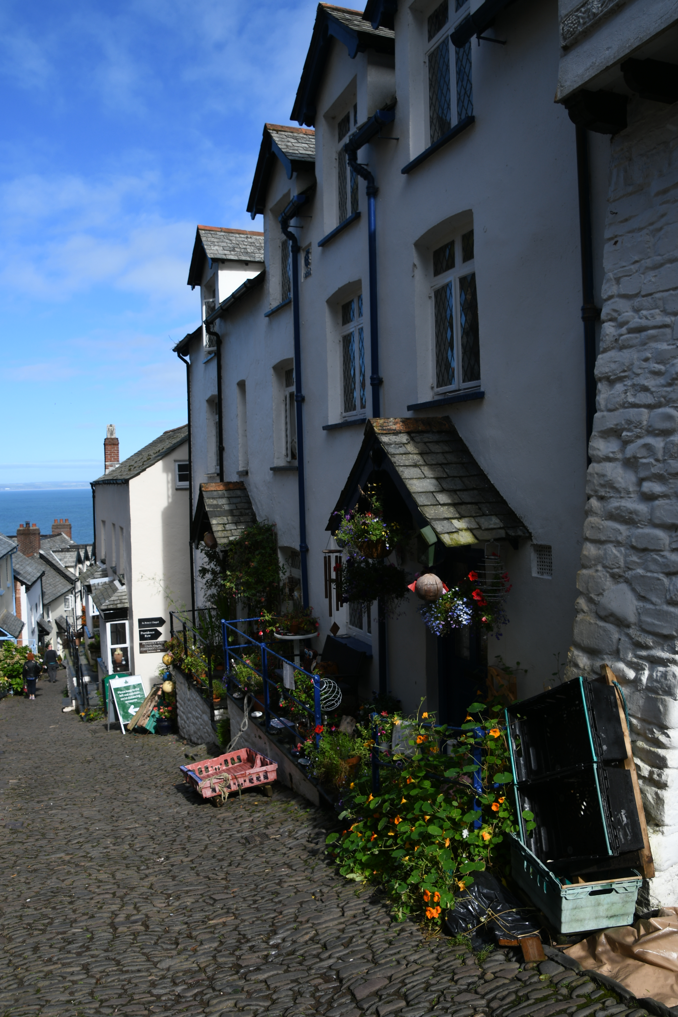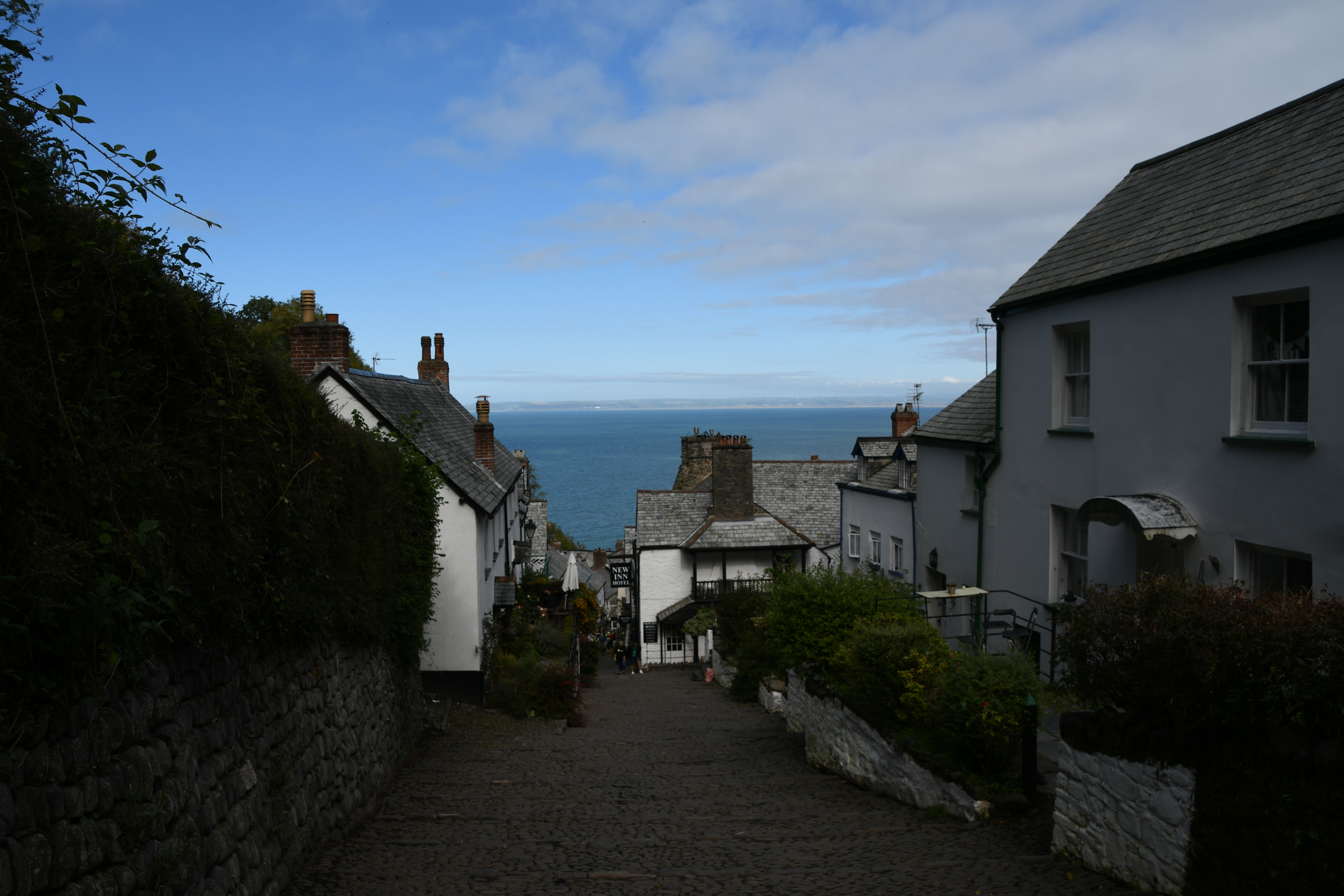 Also raus mit der Kamera… Wieder mal nicht wissend, was auf mich zu kommt, lasse ich mich auf den Parkplatz führen, laufe durch das Visitorcenter durch, in dem ich für Eintritt und Parken zahle und komme dann über einen steilen, mit großen Kieseln gepflasterten Weg in ein hübsches, romantisches Örtchen. Da könnte gar kein Auto fahren ! Tolle Fotomotive und einladende Geschäftchen bis runter zum Hafen und zum Red Lion Hotel (das doch außenrum eine Auto-Zufahrt hat, wie ich feststelle).