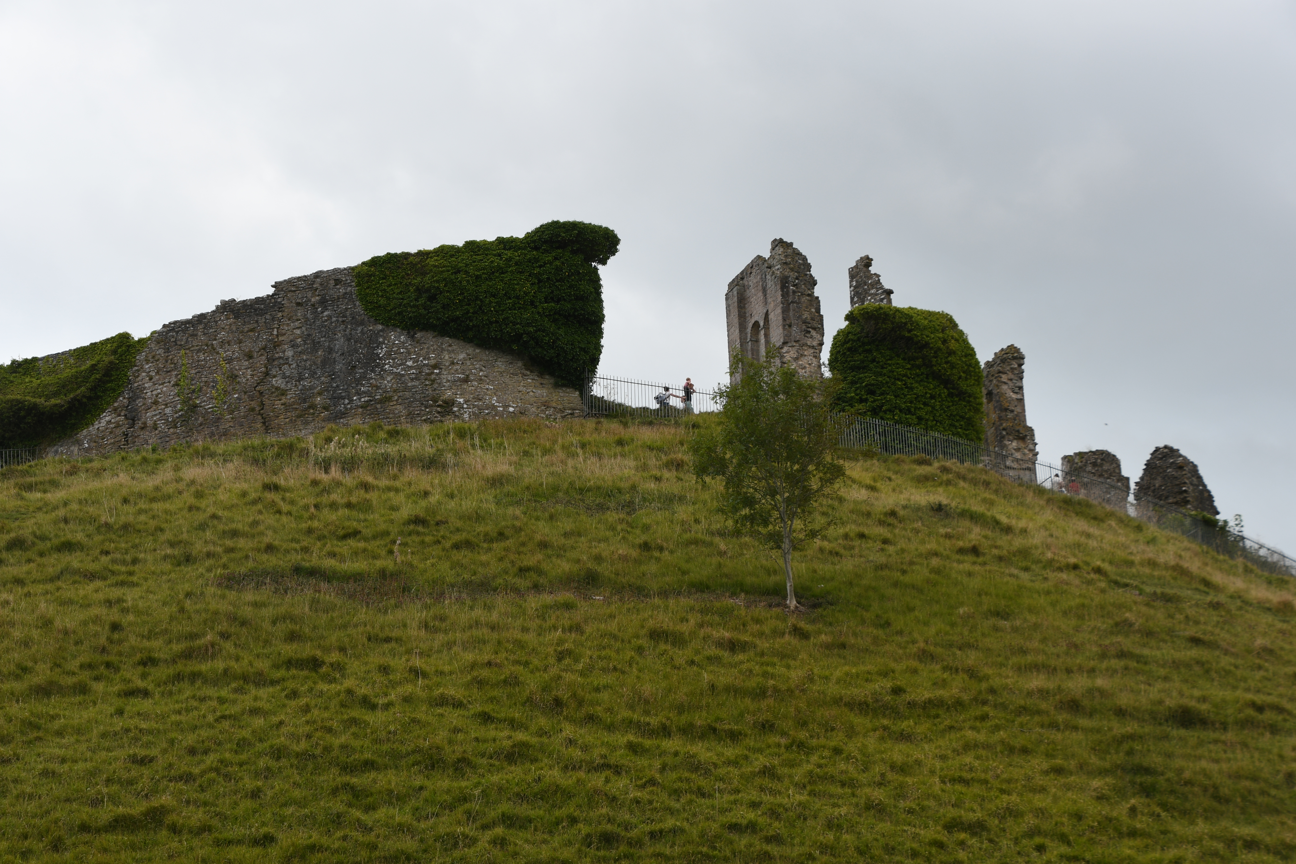 Oben angekommen stellen wir nach einem kurzen Spaziergang fest, dass wir das Kleingedruckte nicht gelesen haben: Auch für den Eintritt in die Burg wäre Pre-Booking nötig gewesen. Nachdem erst für 14 Uhr wieder Tickets verfügbar sind (und bis dahin sind wir ja schon wieder in Swanage), entschließen wir uns, außerhalb der Mauer einen kleinen Spaziergang um das Gelände zu machen. Auch schön, vor allem weil man hier erkennt, wie die Jahrhunderte dem Mauerwerk geschadet haben und weitere Mauerstücke drohen einzustürzen.