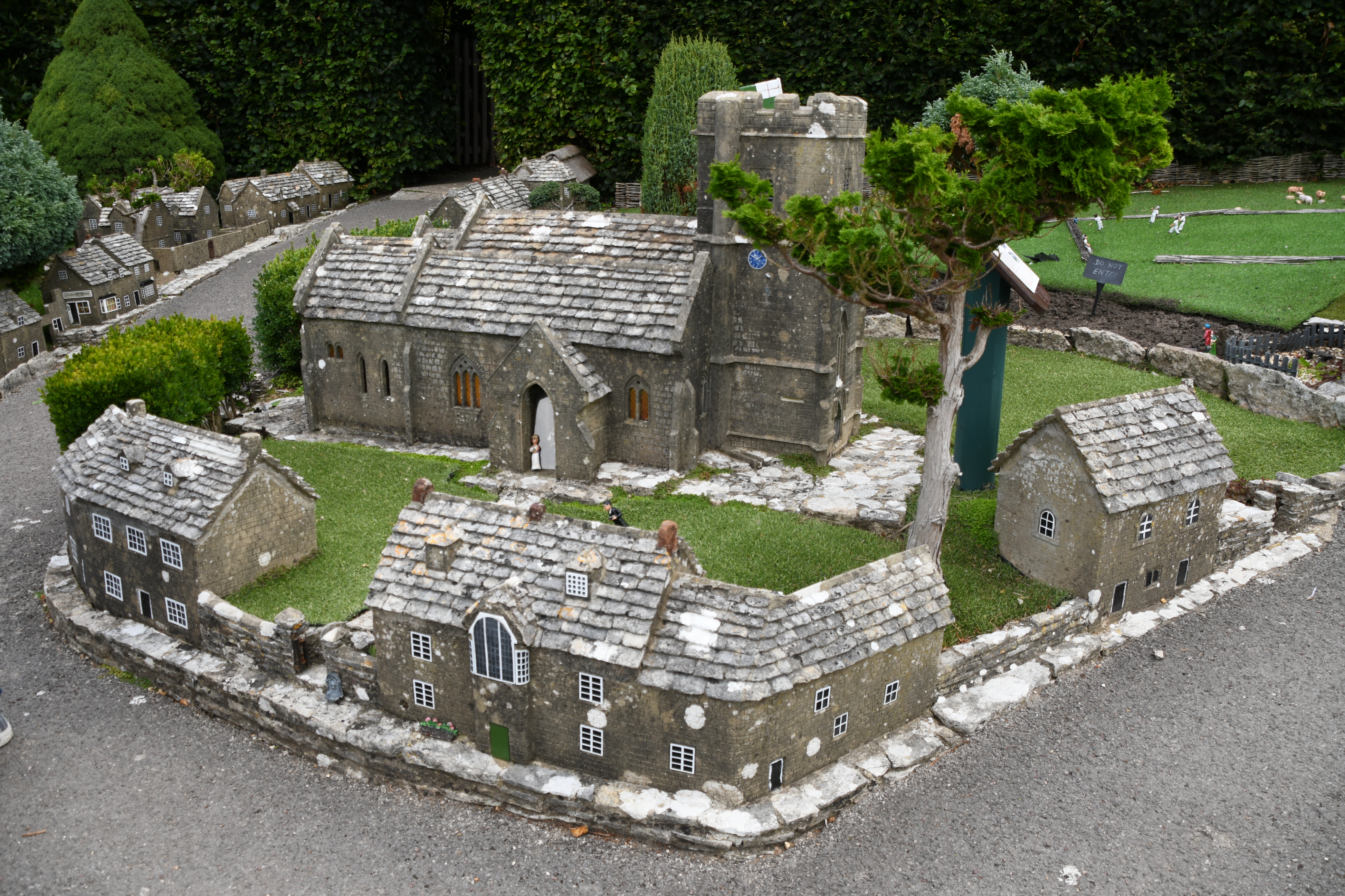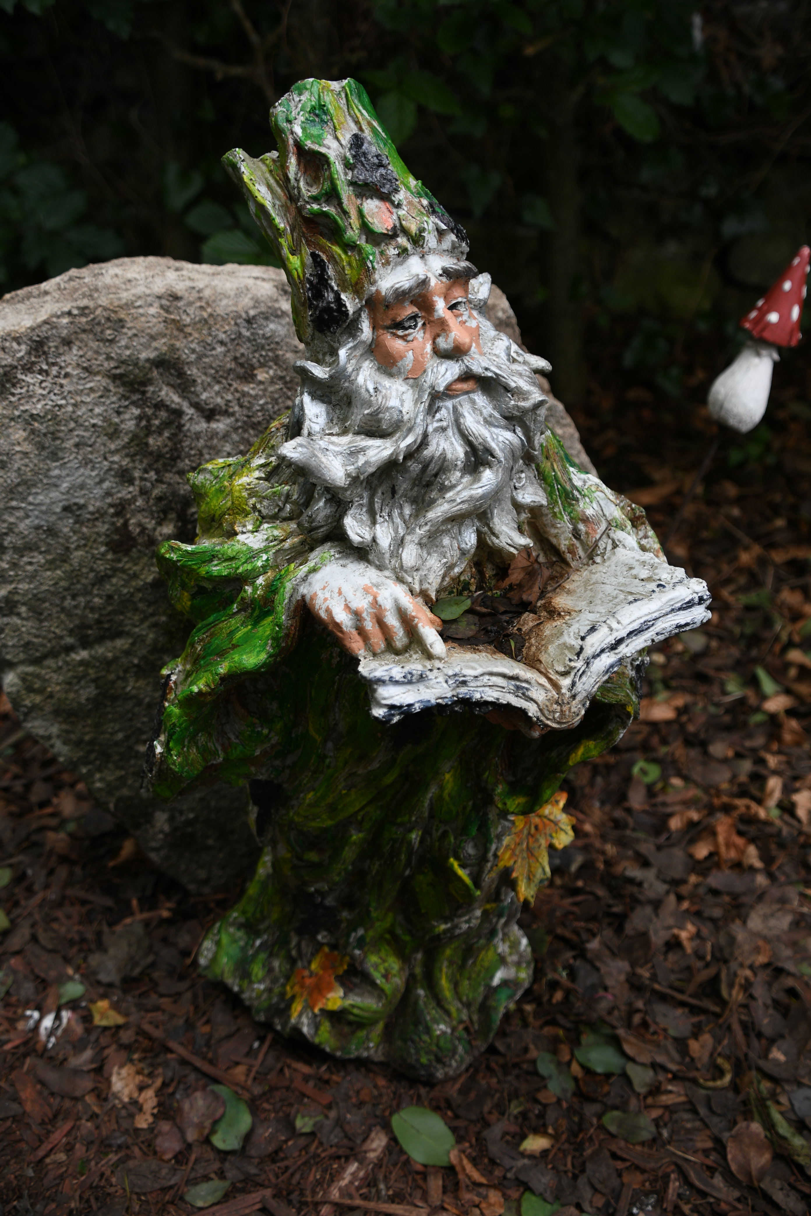 Im Ort gibt es einen Garten mit einem Miniatur-Dorf, den wir uns stattdessen anschauen. So können wir sogar sehen, wie die Burg früher mal ausgesehen hat. Sehr liebevoll nachgestellt sind die Häuschen mit vielen Details. Daneben gibt es auch eine Nische, in der die Feen hausen – wie hübsch und passend, als Merlin mich anschaut… Glastonbury ist überall !
