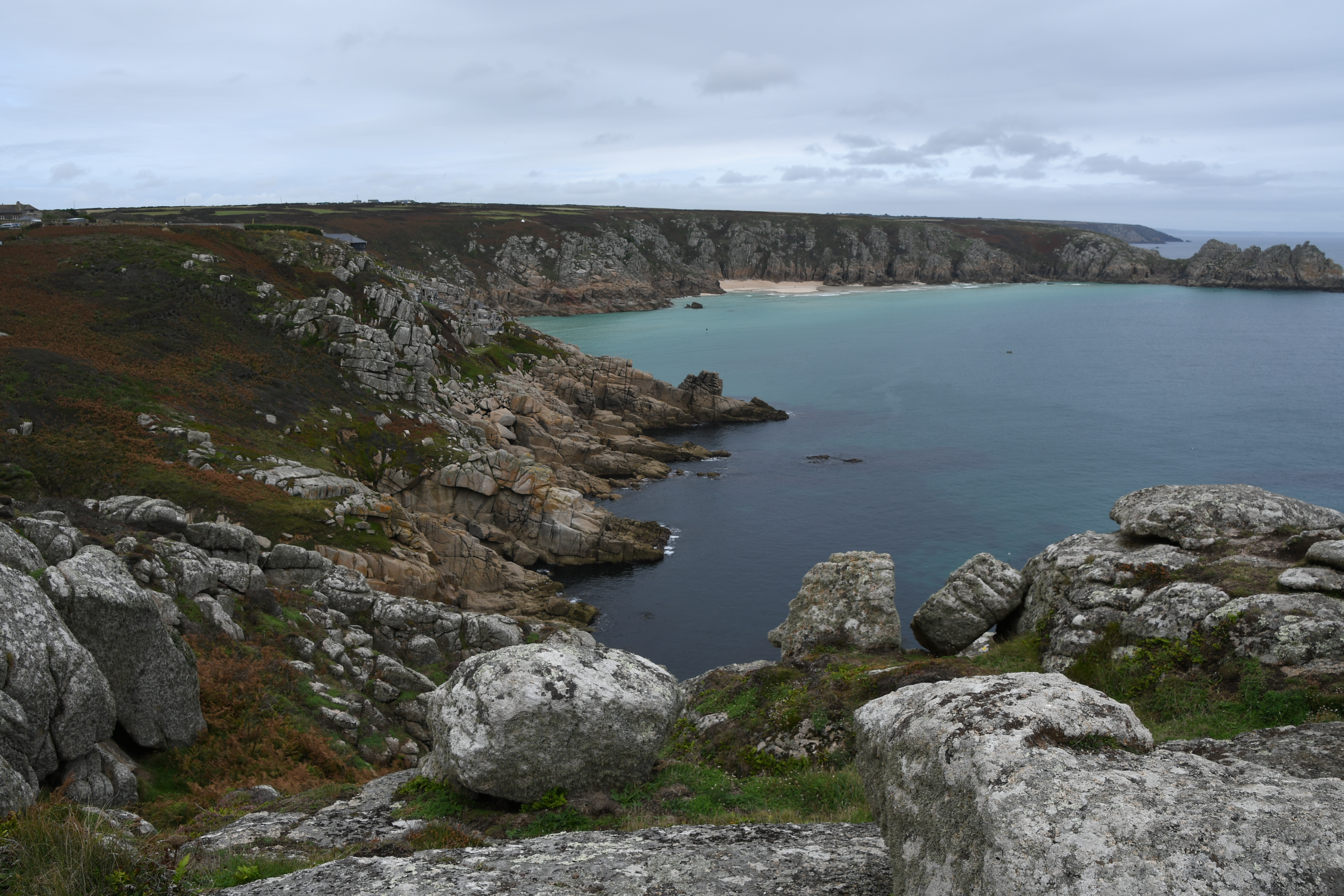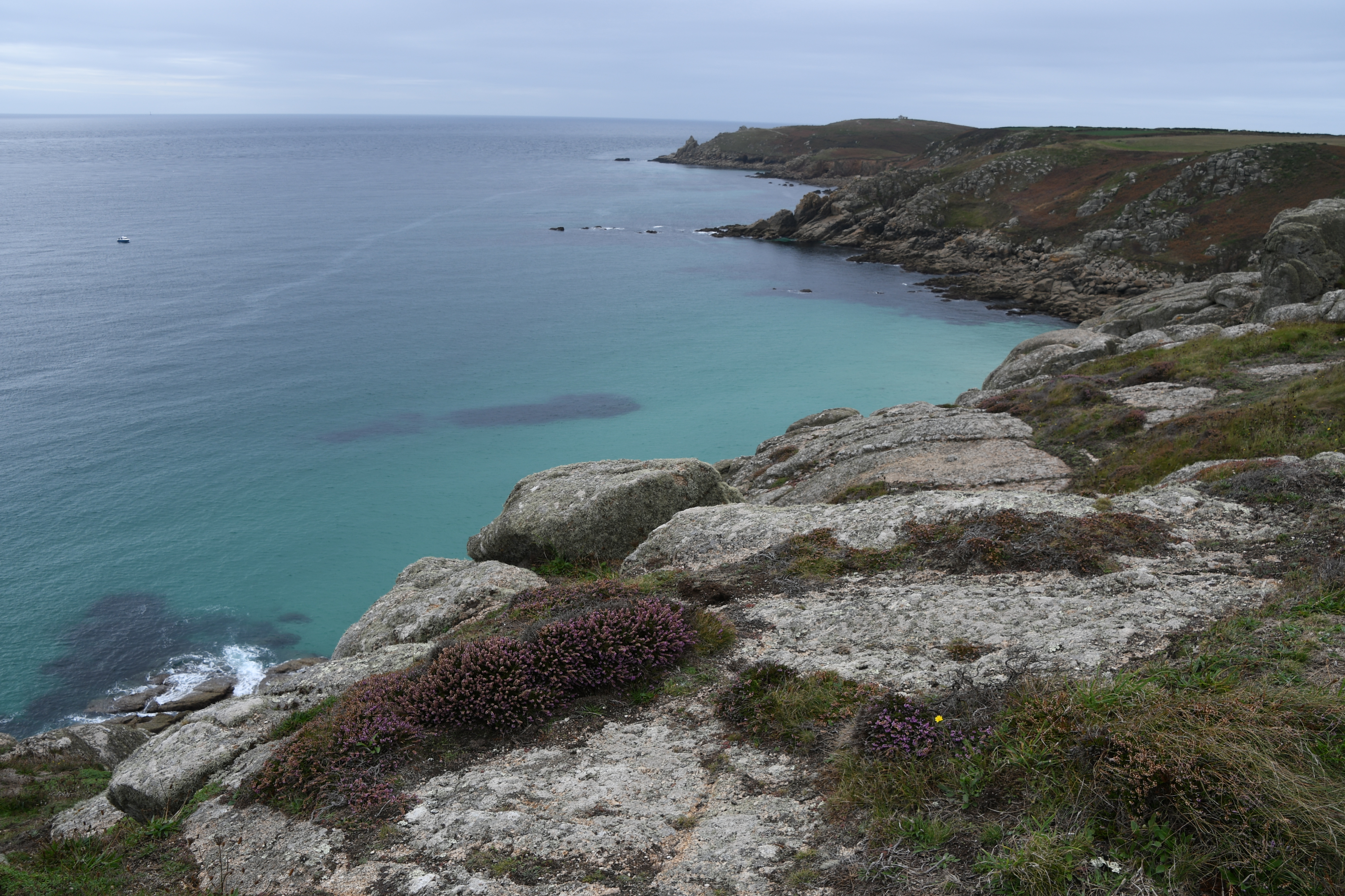 Also auf nach Land’s End. Das Wetter ist zwar noch nicht besser, aber es ist nett, durch die Erika-bewachsene Heide zu fahren, vorbei an der einen oder anderen alten Zinn-Mine, bis ich dann am weltlichsten Punkt angekommen bin. Wäre hier nicht ein richtiger Vergnügungspark entstanden, könnte man echt meinen, hier ist die Welt zu Ende: alles grau, trist, regnerisch. Bei besserem Wetter aber sicher sehr schön, es gibt viele Spazierwege um das Kap herum.