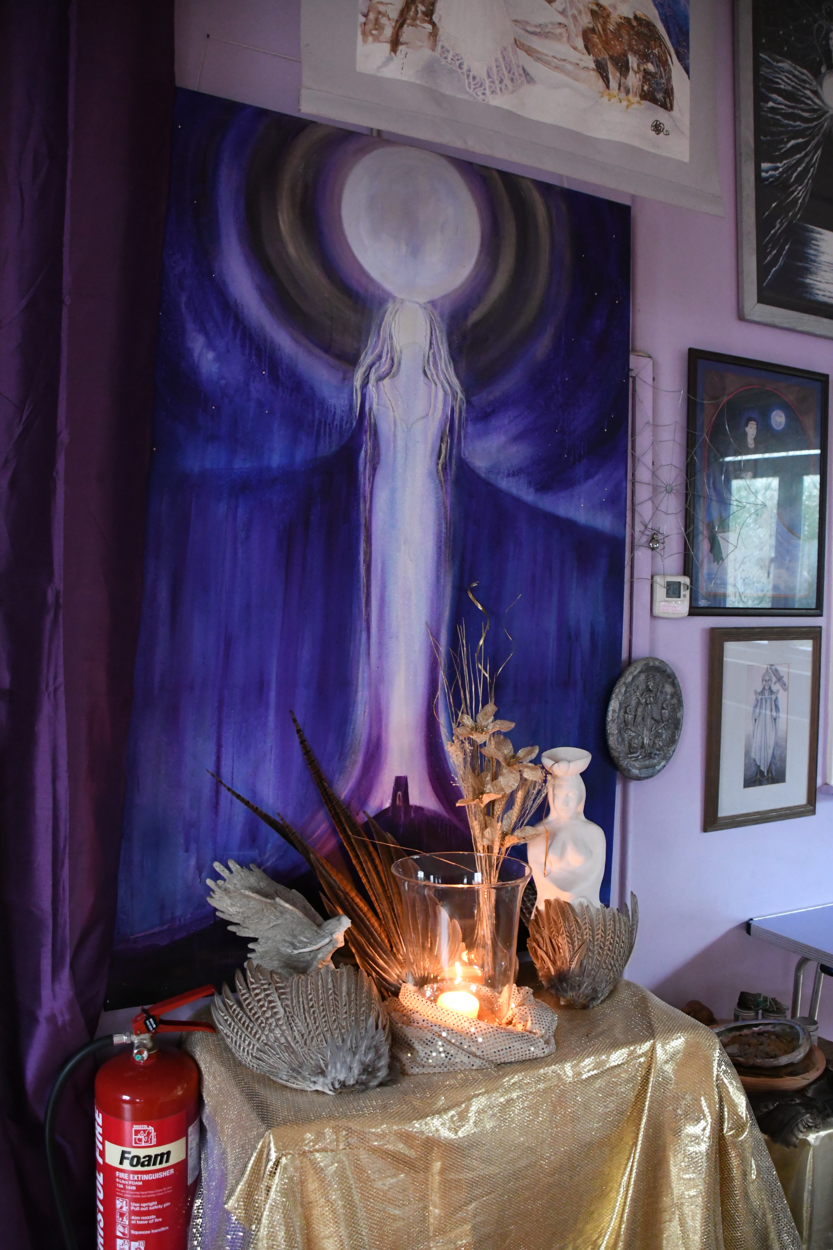 Frisch gestärkt und nach wieder schönen Gesprächen mit den Mädels treffen wir uns zum zweiten Mal mit Michaela und folgen ihr zum nächsten Programmpunkt: Jetzt geht es vorbei an der St. Mary’s Church in einen Garten mit einem wunderbaren Haus: The Goddess Hall. Und wieder wird es spannend.